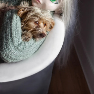—unmistakable, I know. That particular model happens to be a dog whisperer and suddenly Lamby jumped up on her, and I thought, No, no, no, no, and then I looked through the camera, and said, “Yes, yes, yes.” The dog’s eyes looked so much more real, so much more human.